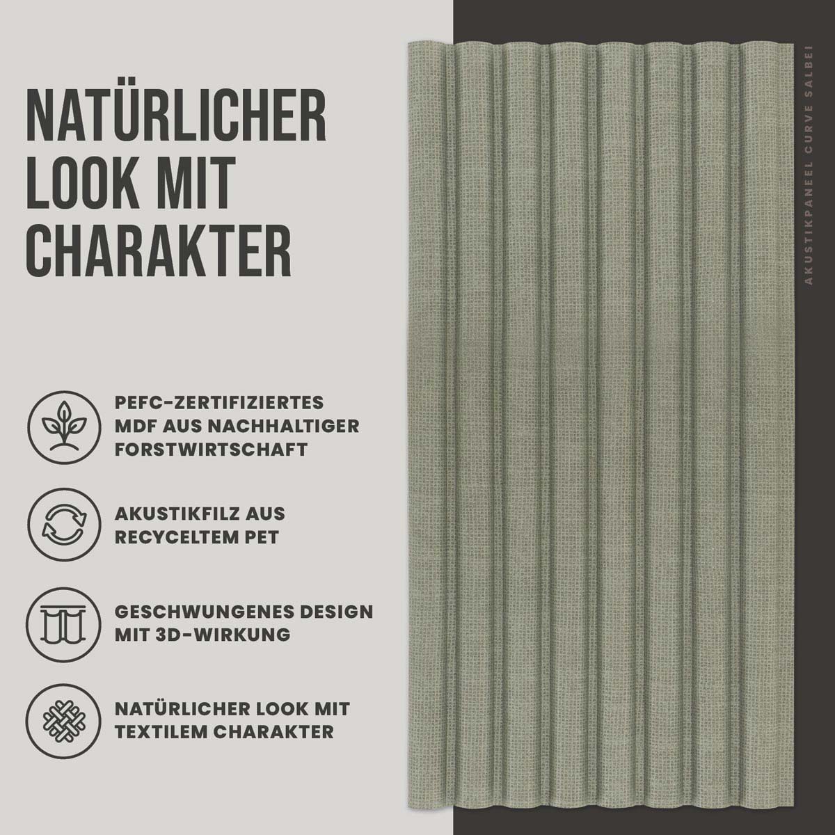 Akustikpaneele Curve in Salbei natürliche Farbnuancen für entspannte Raumkonzepte