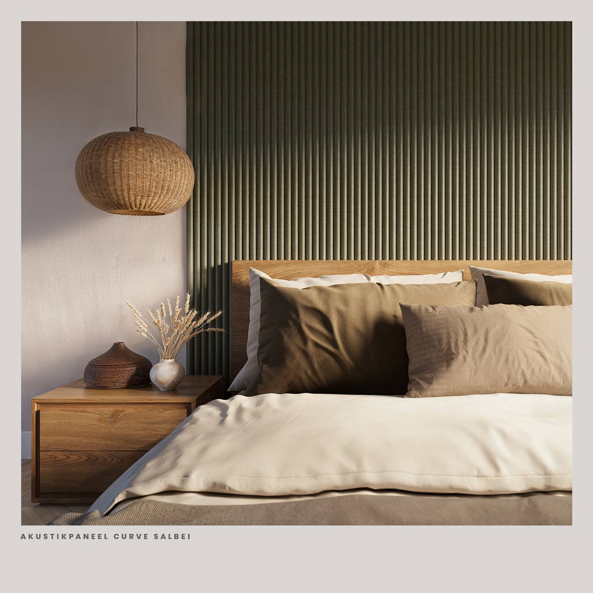 Die Akustikpaneele mit Wellenstruktur in Salbei bringen eine sanfte, natürliche Farbigkeit an die Wand und schaffen eine ruhige, ausgeglichene Atmosphäre. Der dezente Grünton wirkt zurückhaltend und modern zugleich und eignet sich besonders für Wohnräume, Schlafzimmer oder Arbeitsbereiche, in denen Entspannung und Konzentration gefragt sind. Die halbkreisförmigen Lamellen sorgen dabei für eine weiche, organische Wandstruktur.