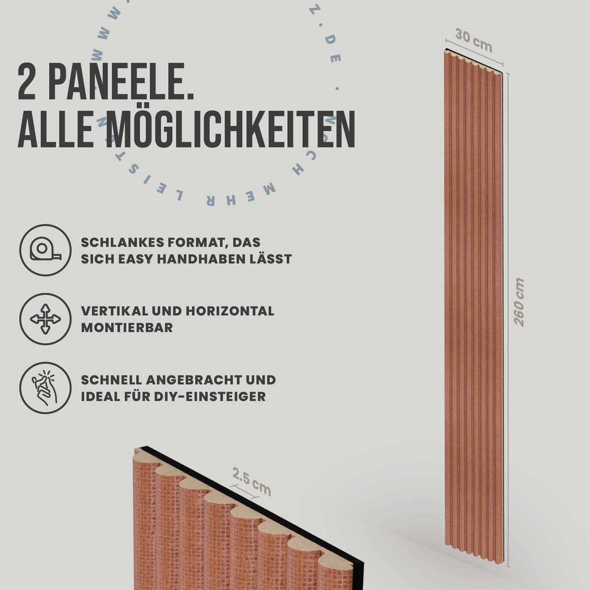 - Maße je Paneel: 260 × 30 cm