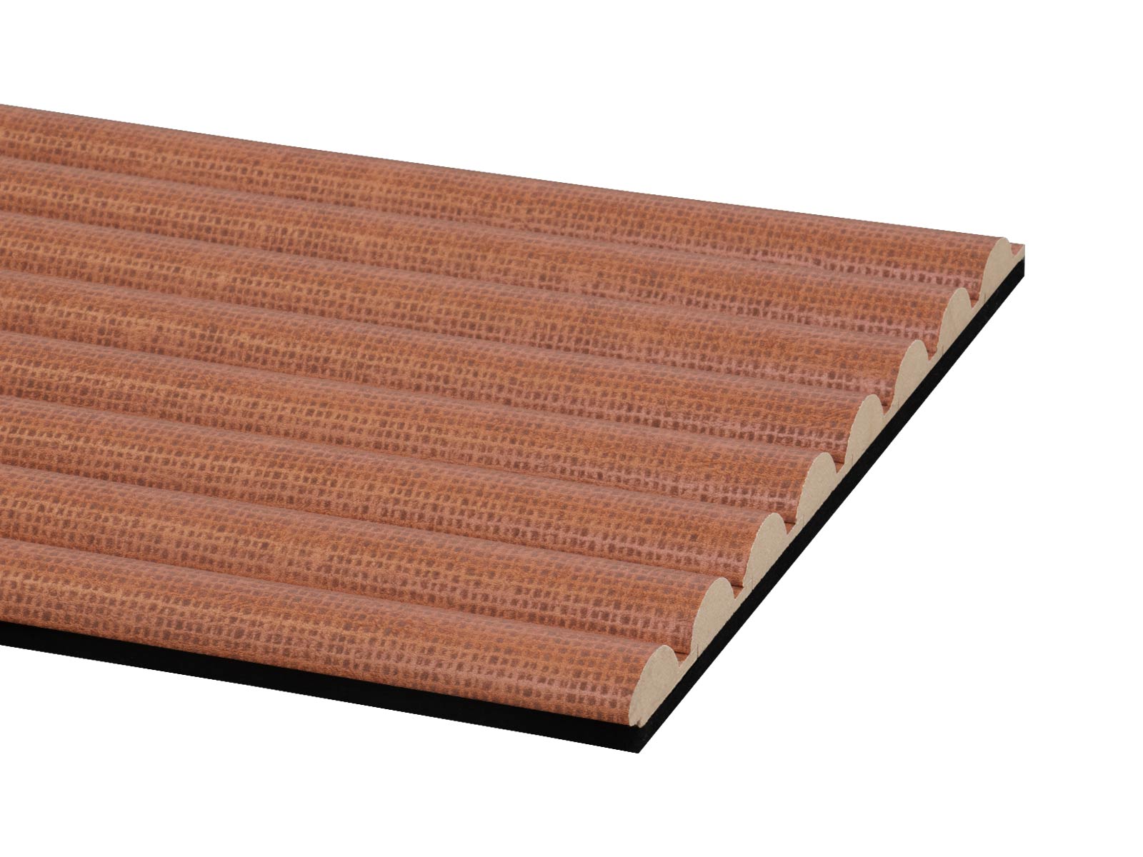 Die Akustikpaneele mit Wellenstruktur in Terra setzen auf eine ausdrucksstarke Farbgebung, die Räumen Tiefe und Wärme verleiht. Der erdige Terraton wirkt kraftvoll und wohnlich zugleich und eignet sich ideal für moderne Wohnkonzepte, kreative Arbeitsbereiche oder stilvolle Akzentwände. Die halbkreisförmigen Lamellen sorgen für eine sanfte Wellenstruktur, die das Wandbild lebendig macht, ohne unruhig zu wirken.