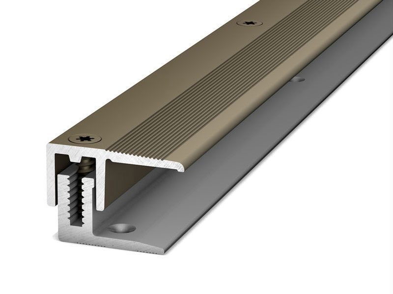 Geeignet für Laminat, Multilayer und Fertigparkett. Die Montage erfolgt über ein Basisprofil, das auf dem Untergrund verschraubt wird. Nach der Bodenverlegung wird das Oberprofil aufgesetzt und mit den beiliegenden Schrauben fixiert. Bei größeren Höhenunterschieden kann alternativ das PS 400 Profilsystem eingesetzt werden.