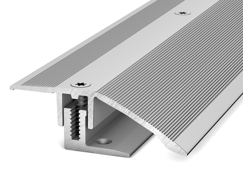 Im Lieferumfang ist das passende Montagezubehör enthalten. Die Befestigung erfolgt mit Schrauben über ein bewährtes Schraubprofilsystem: Das Basisprofil wird verschraubt, anschließend das Deckprofil eingesetzt und ebenfalls verschraubt. Für Estrich mit Dehnungsfuge sind Basisprofile mit breitem Schraubschenkel erhältlich.