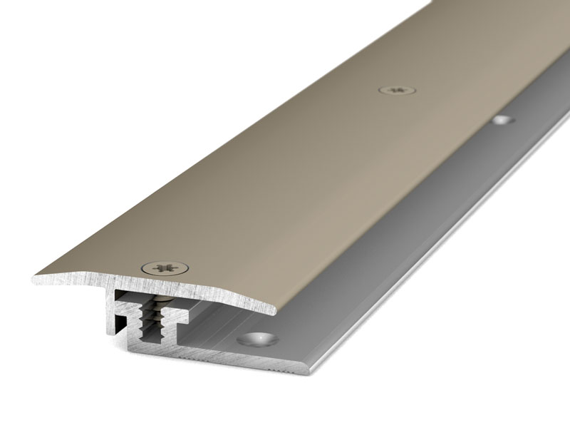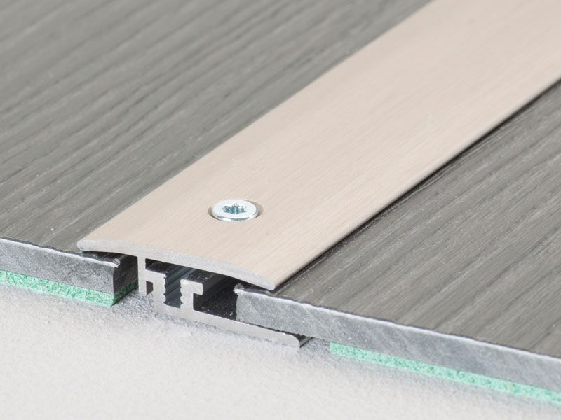Dieses Übergangsprofil wurde für schwimmend verlegte Designbeläge entwickelt, eignet sich aber auch für andere Bodenbeläge mit ähnlicher Aufbauhöhe. Die Konstruktion ist selbstjustierend bis 8,5mm, sodass kleinere Höhenunterschiede zuverlässig ausgeglichen werden. Mit einer Breite von 27mm bietet das Profil eine stabile und unauffällige Lösung.