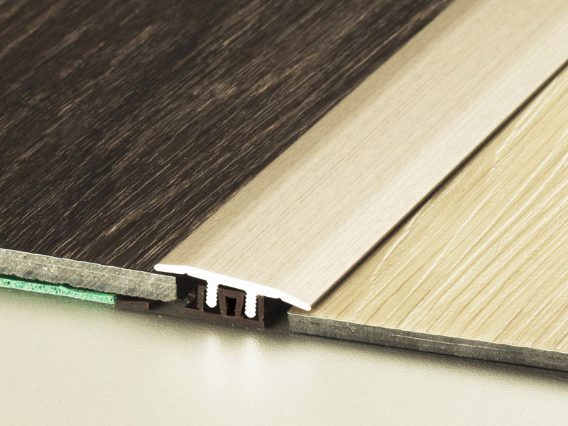 Das Clipsystem sorgt für eine sichere Verbindung zwischen Ober- und Basisprofil. Es ermöglicht eine einfache Montage und bietet zugleich Dehnungsfugen für dimensionsstabile Bodenbeläge. Die Profile sind flach gehalten und schaffen einen unauffälligen Übergang zwischen verschiedenen Belägen.