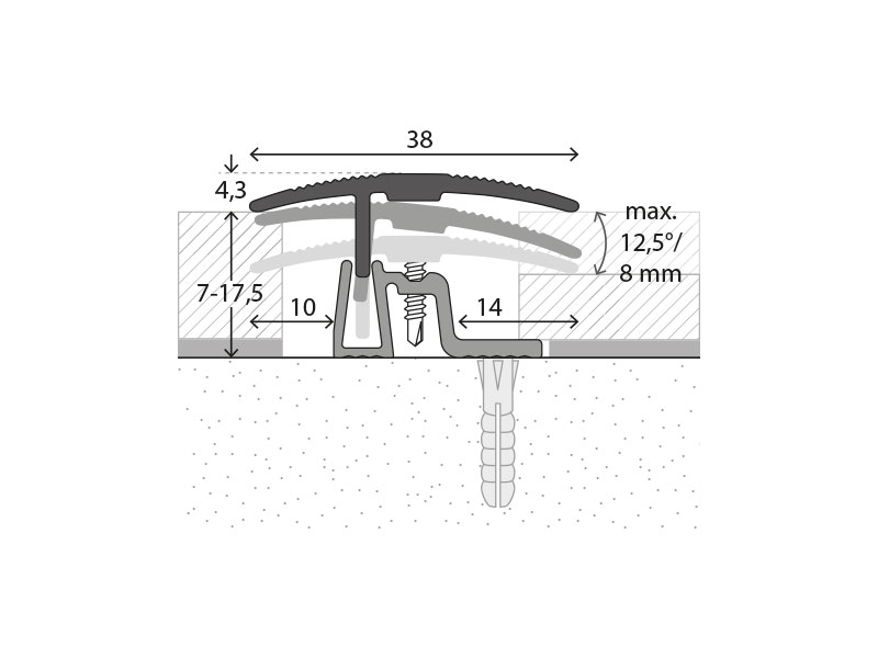 Die Montage erfolgt über ein Basisprofil, das direkt auf dem Untergrund verschraubt wird. Nach dem Verlegen des Bodenbelags wird das Oberprofil mit den mitgelieferten Selbstbohrschrauben befestigt. Durch den Rundumkontakt der Schrauben entsteht eine stabile Verbindung, die auch bei langfristiger Nutzung zuverlässig hält.