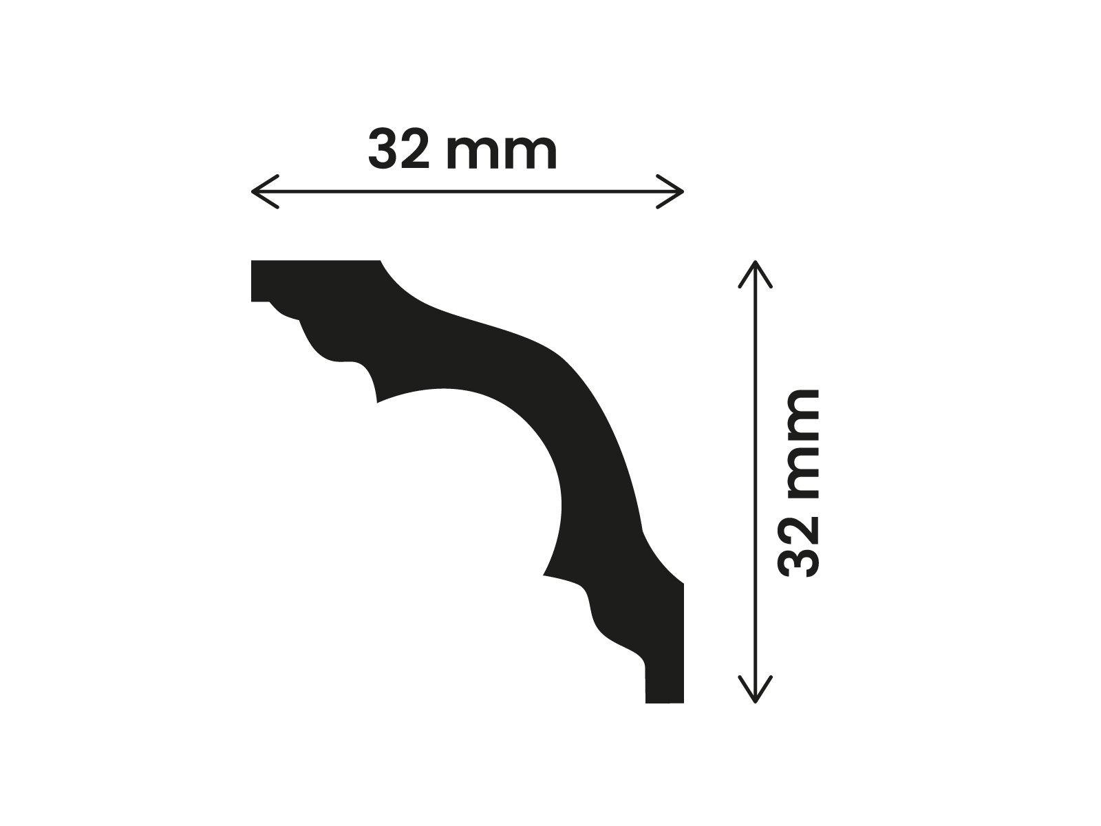 Die Zierleiste eignet sich für den Übergang zwischen Wand und Decke sowie zur optischen Aufwertung von Innenräumen. Mit ihrer klaren Form und der leichten Wölbung passt sie sowohl in klassische als auch moderne Raumkonzepte. Die Leiste besteht aus extrudiertem Styropor (HP-Polymer).