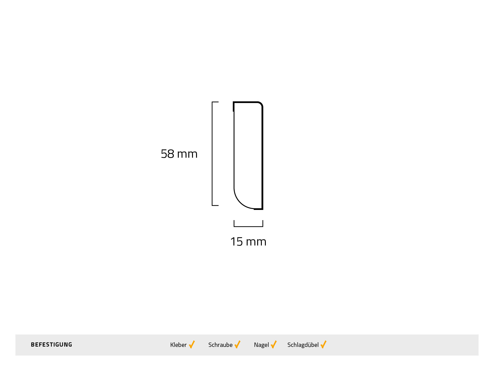 | Befestigungsart: | Kleber, Schlagdübel, Schraube |