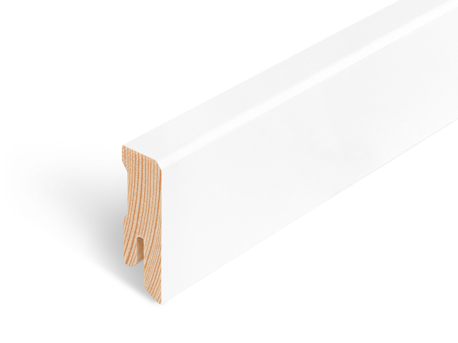 Modern gefast Kiefer Massivholz - Sockelleiste weiß lackiert RAL9016