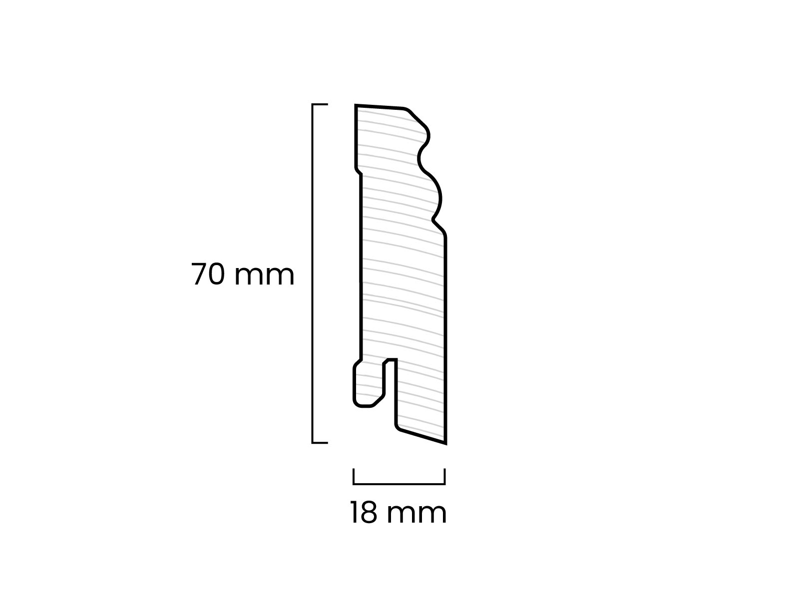 Erhältlich ist die Hamburger Leiste in zwei Höhen: Die 70 mm Variante bringt den klassischen Look auf mittlerer Höhe und passt in so gut wie jedes Zimmer. Wenn du einen markanteren Abschluss suchst, greif zur 95 mm Version. Die steht ordentlich da, bringt mehr Präsenz an die Wand und macht vor allem in hohen Räumen eine super Figur. Beide Varianten sind 18 mm stark und 2,4 m lang – perfekt für saubere, durchgängige Abschlüsse.