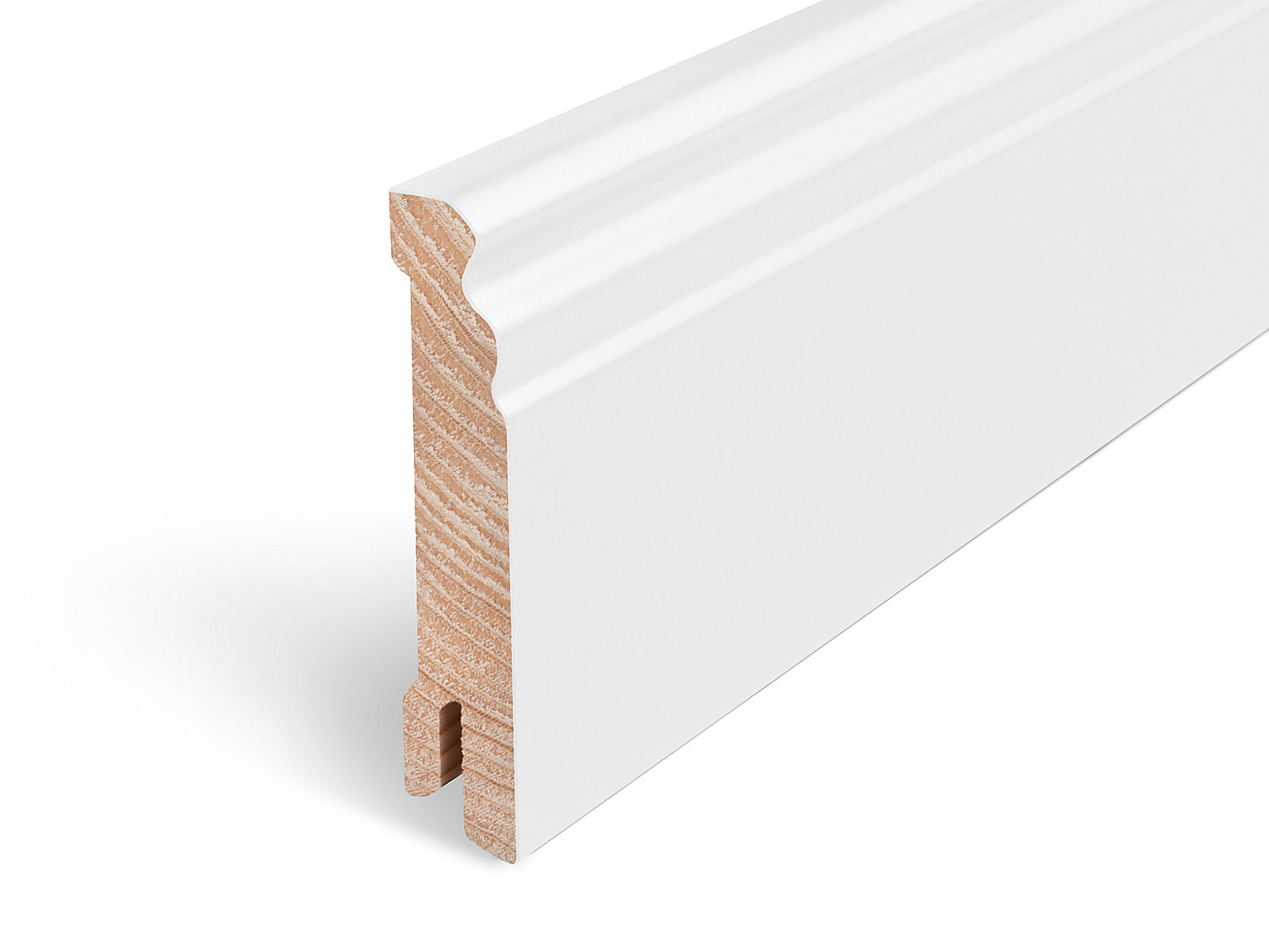 Fußleiste im Hamburger Profil - Massivholz weiß foliert