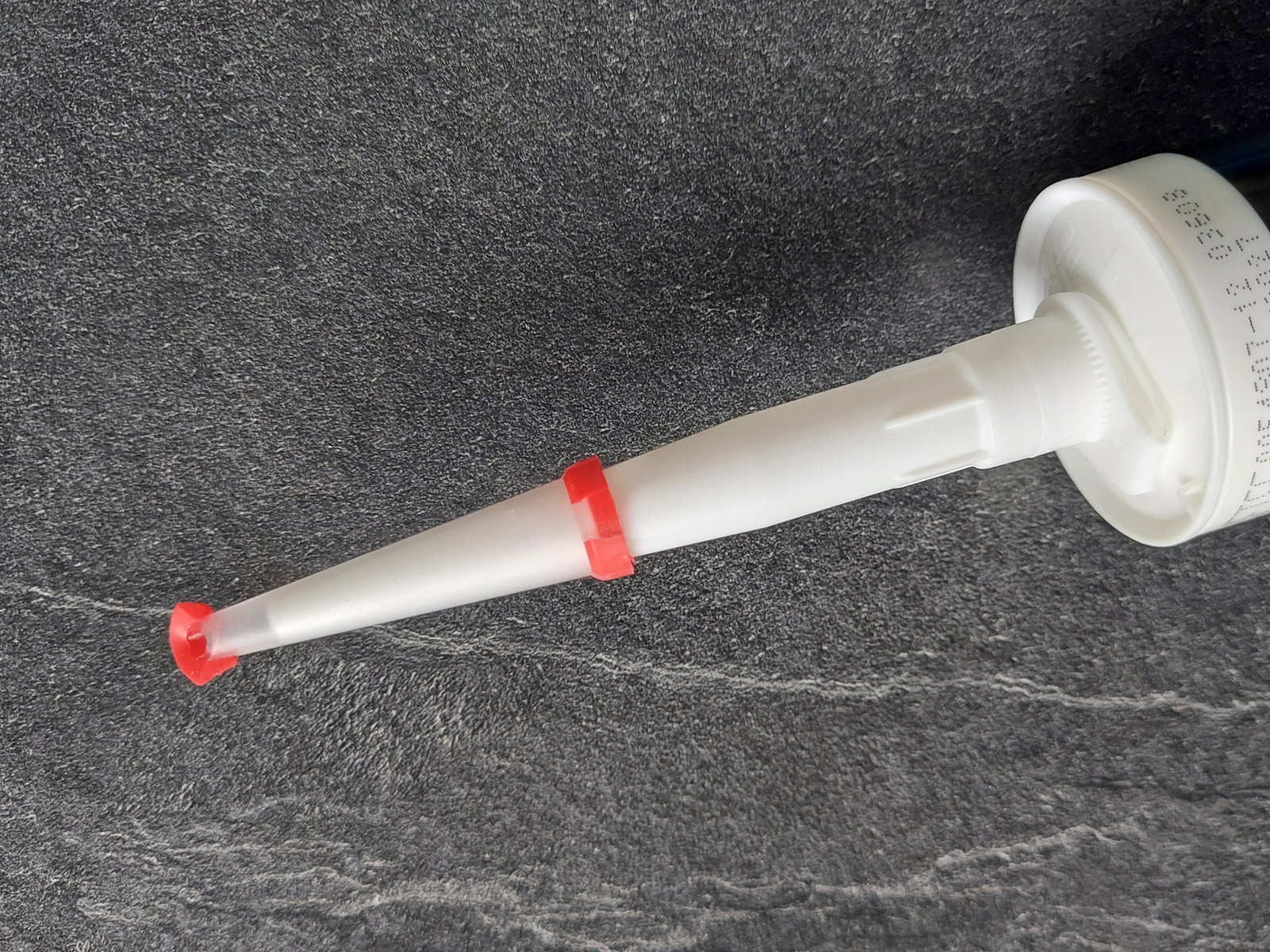 Weil der Dichtstoff exakt dort landet, wo er soll, sparst Du bis zu 50 % Material und vermeidest das nervige Überquellen. Nach dem Einsatz spülst Du die Spitzen einfach aus und legst sie für den nächsten Job bereit. Die rote Endkappe verschließt die Kartusche luftdicht, hält den Rest frisch und verhindert das Austrocknen – perfekt für Arbeitspausen oder den nächsten Tag.