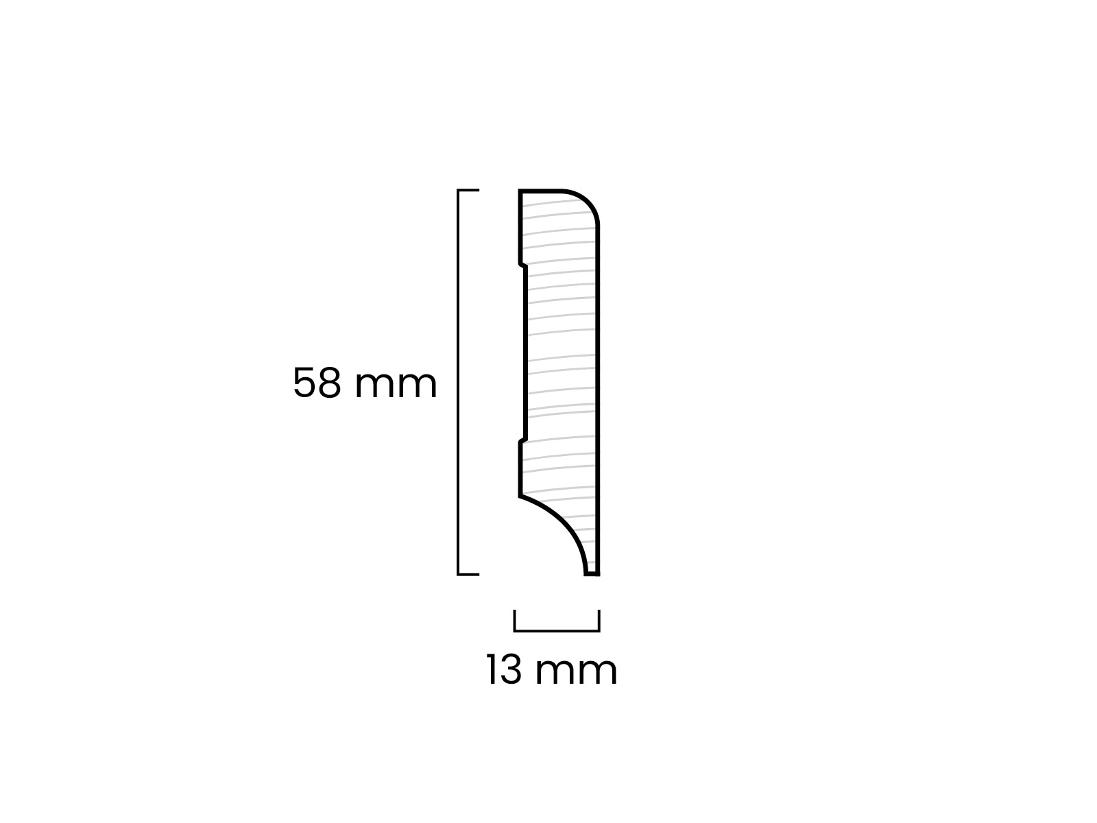 Weiß lackierte Fußleiste (RAL9010) aus Kiefer Massivholz – Oben rund 13 x 58 mm