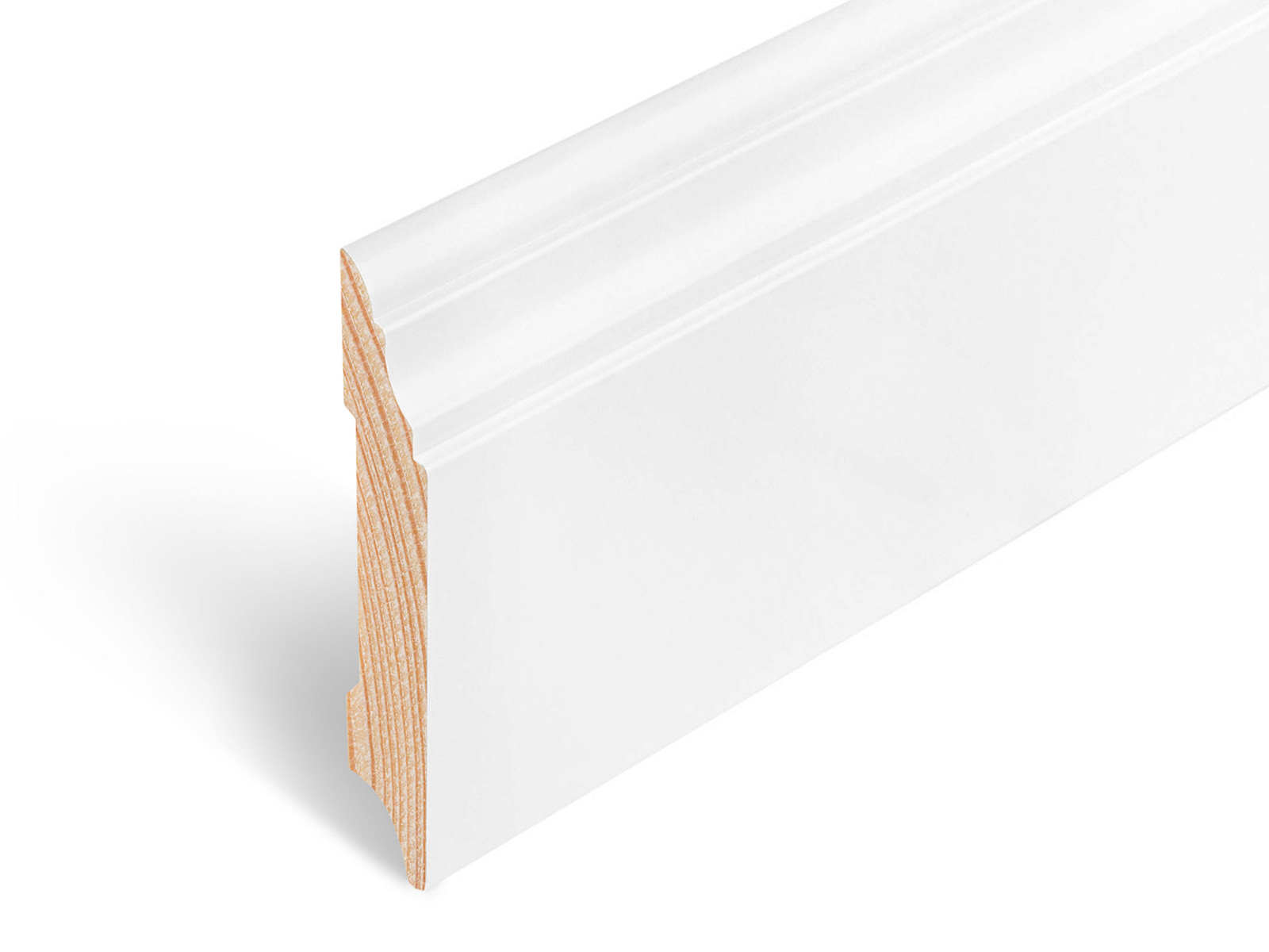 Du willst Deinen Räumen das gewisse Etwas verleihen? Dann ist unsere profilierte Massivholzleiste aus Kiefer in strahlendem Weiß genau das Richtige für Dich! Ob als Sockelleiste oder als Wandbekleidungsleiste – diese Leiste ist ein echter Allrounder. Mit ihrem eleganten Profil und der hochwertigen Lackierung in RAL9016 verleiht sie jedem Raum einen modernen und zugleich zeitlosen Look. Ideal, um den Übergang zwischen Wand und Boden stilvoll abzurunden oder Deinen Wänden eine besondere Note zu geben.