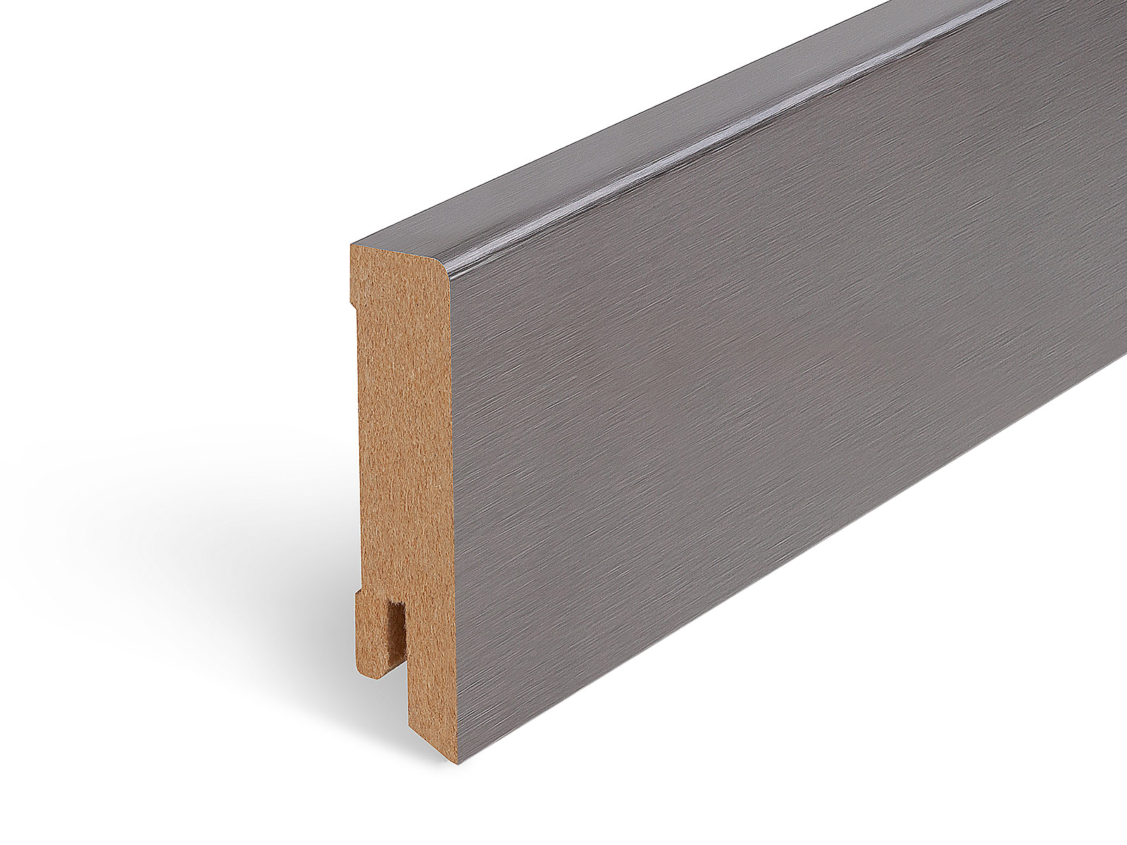 Kompakt, modern und im exklusiven Edelstahl-Look: Das ist unsere Modern-Fußleiste mit Edelstahl Dekorfolie. Die schlichte Profilform unterstreicht die ungewöhnliche Farbgebung und gibt ihr den Raum, um zu wirken. Diese Fußleiste ist die perfekte Ergänzung für moderne Wohnstile mit dem gewissen Etwas.