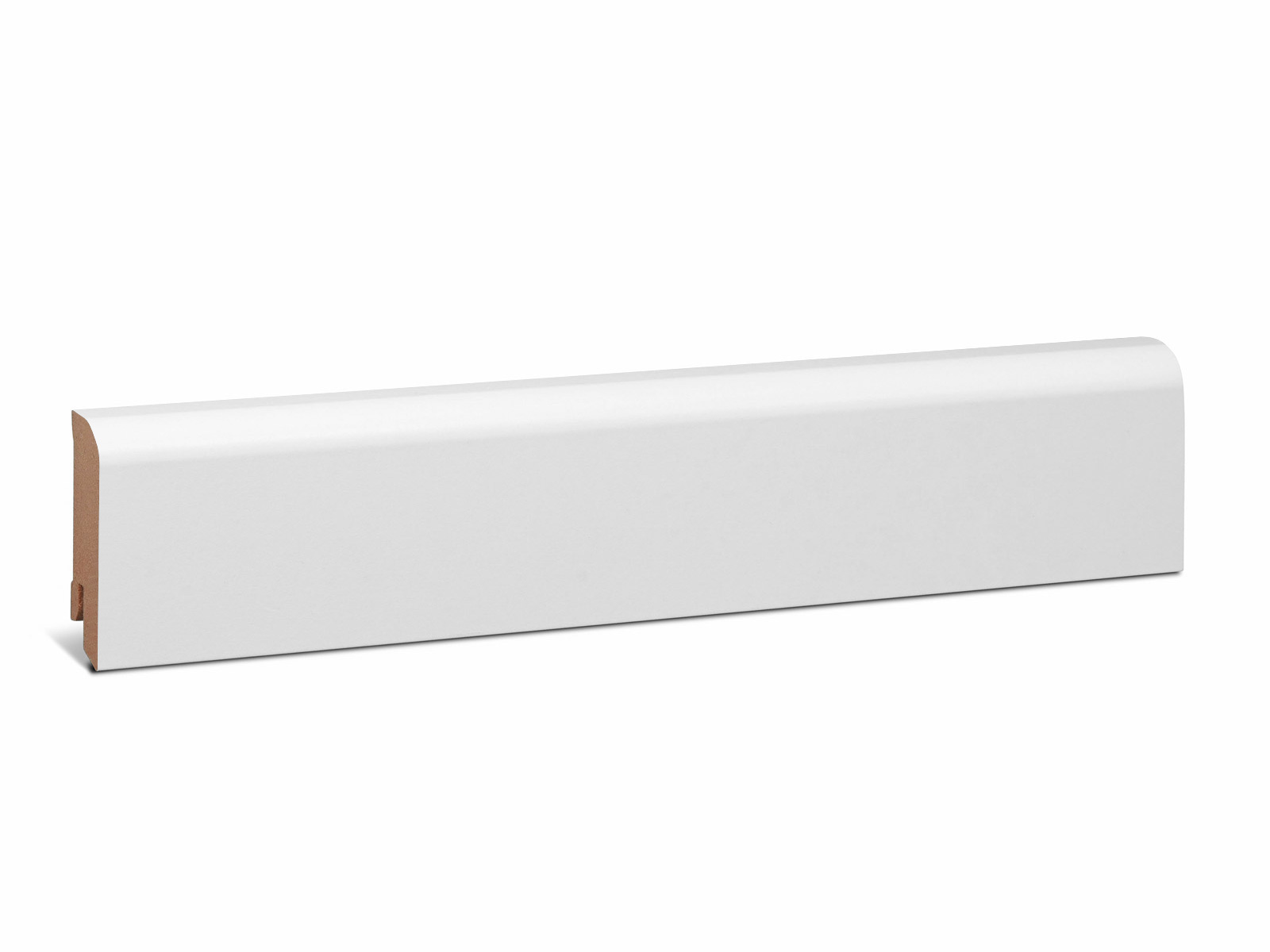 Sockelleiste weiß 18 x 58 mm Oben rund Profil MDF foliert (RAL9016)