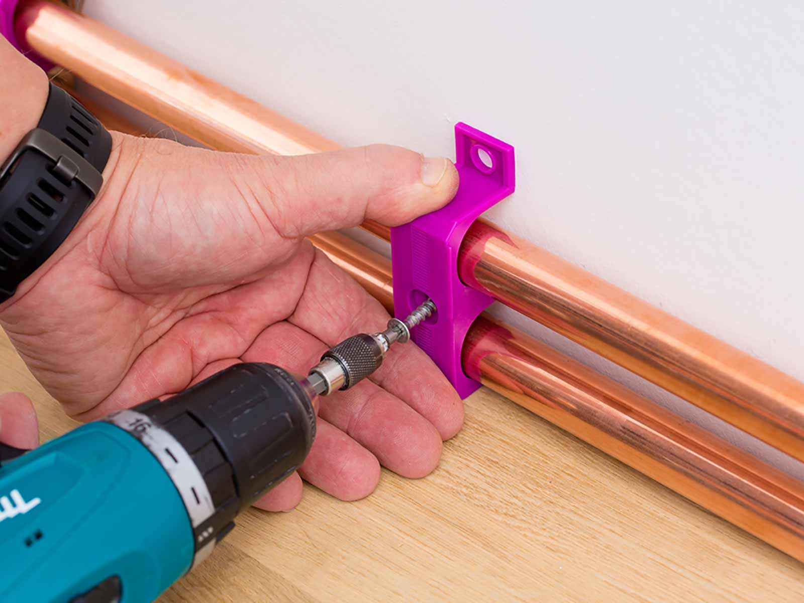 Die perfekte Lösung für die Montage von Rohrverkleidungsleisten: die zweiteilige, höhenverstellbare Befestigungsschelle von Primo. Mit dieser patentierten Schelle kannst du die Heizungsrohrverkleidung von Primoschnell, variabel und unkompliziert anbringen. So erreichst du ein handwerklich perfektes Ergebnis ohne großen Aufwand.