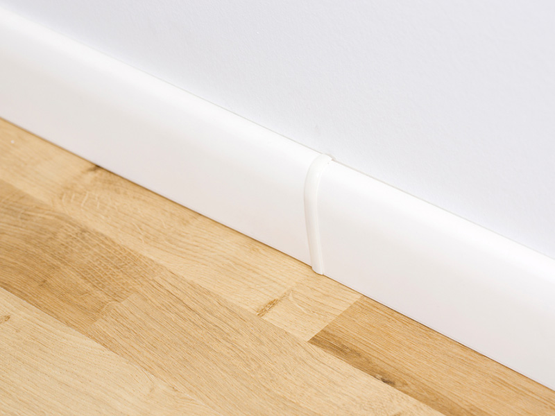 Die abgerundete Oberfläche der weißen Sockelleiste mit Kabelkanal ist nicht nur schick, sondern erleichtert Ihnen auch noch die Reinigung (speziell optimiert, um Staubablagerungen zu reduzieren).