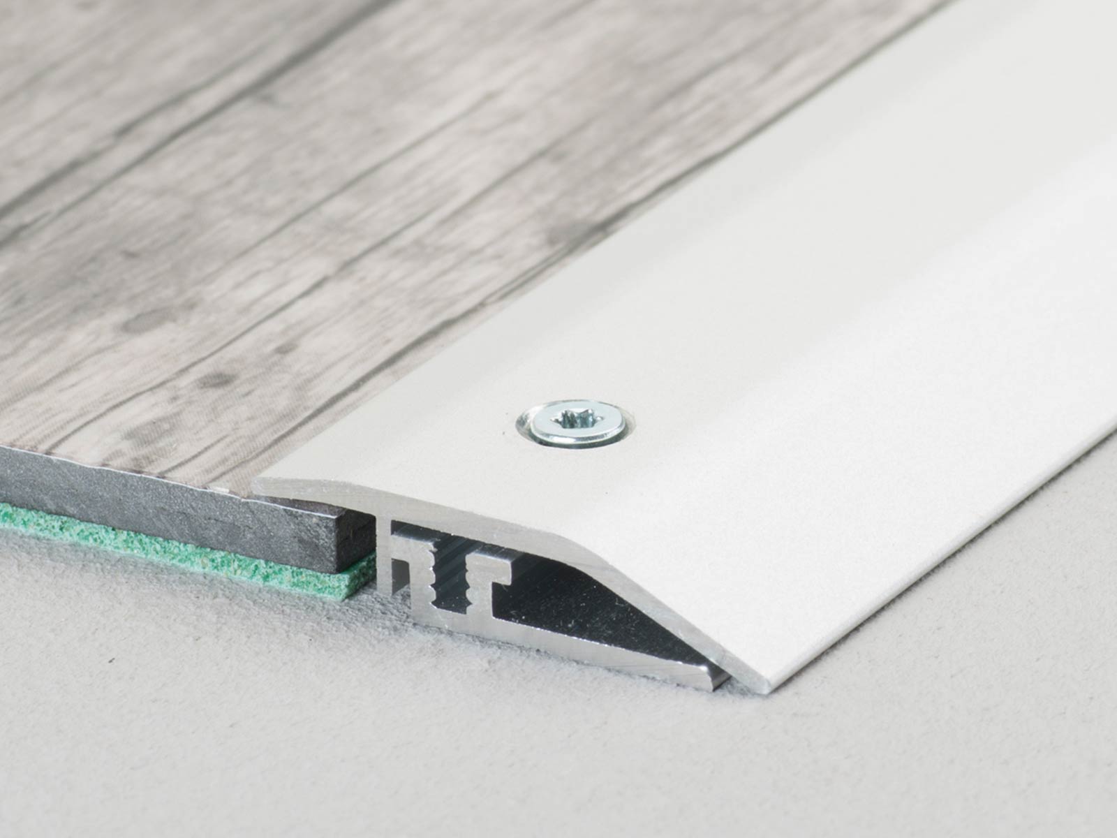 Das Anpassungsprofil von Prinz LPS Design wurde speziell für die Verlegung von schwimmenden Designbelägen entwickelt. Es bietet jedoch auch die Möglichkeit, andere Bodenbelagsarten mit ähnlicher Stärke zu verarbeiten, da es sich automatisch an Aufbauhöhen von bis zu 8,5 mm anpasst. Die Installation ist schnell und einfach. Das Anpassungsprofil beeindruckt nicht nur durch seine einfache Montage und die Vielfalt seiner Einsatzmöglichkeiten, sondern auch durch sein modernes Design in der Trendfarbe Silber. Es kann auf dunklen Böden verwendet werden, um stilistische Akzente zu setzen, oder auf hellen Böden für einen unauffälligen Look montiert werden - die Entscheidung liegt bei Dir.