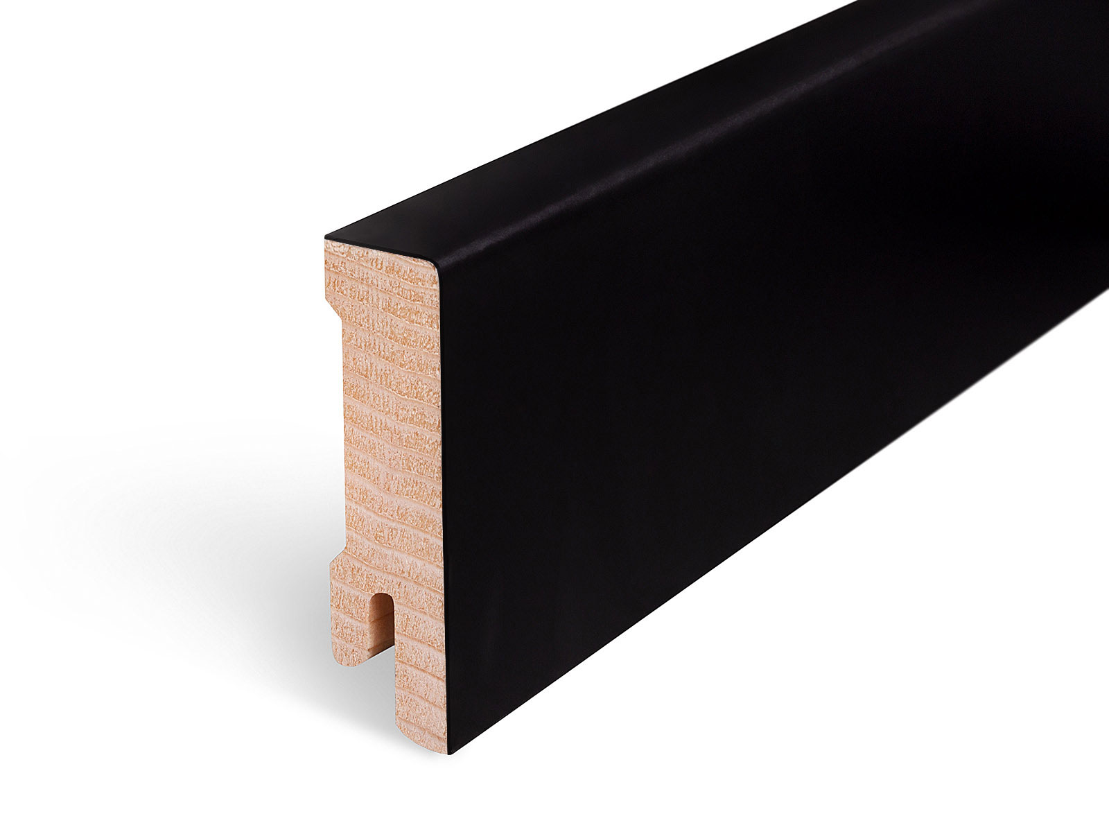 Sockelleiste Schwarz 16 x 58 mm Massivholz foliert - Modern Profil