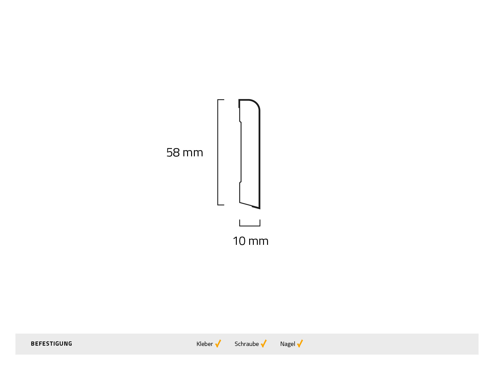 Technische Details der oben abgerundeten Fußleiste