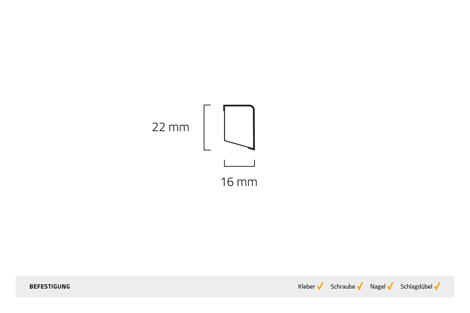 Du bist ein Mensch der klaren Worte, genießt deine Getränke am liebsten pur und verzichtest auch sonst ganz bewusst auf unnötige Schnörkeleien im Leben? Dann passt unsere kompakte Abschluss- und Vorsatzleiste garantiert zu deinem persönlichen Einrichtungsstil. Nicht nur wegen des super Preis-Leistungs-Verhältnisses. Klein aber fein überdeckt die kleine Fußleiste unschöne Spalträume und sorgt auf sehenswerte Weise für einen sauberen Übergang zwischen Wand und Tür- bzw. Fensterrahmen.