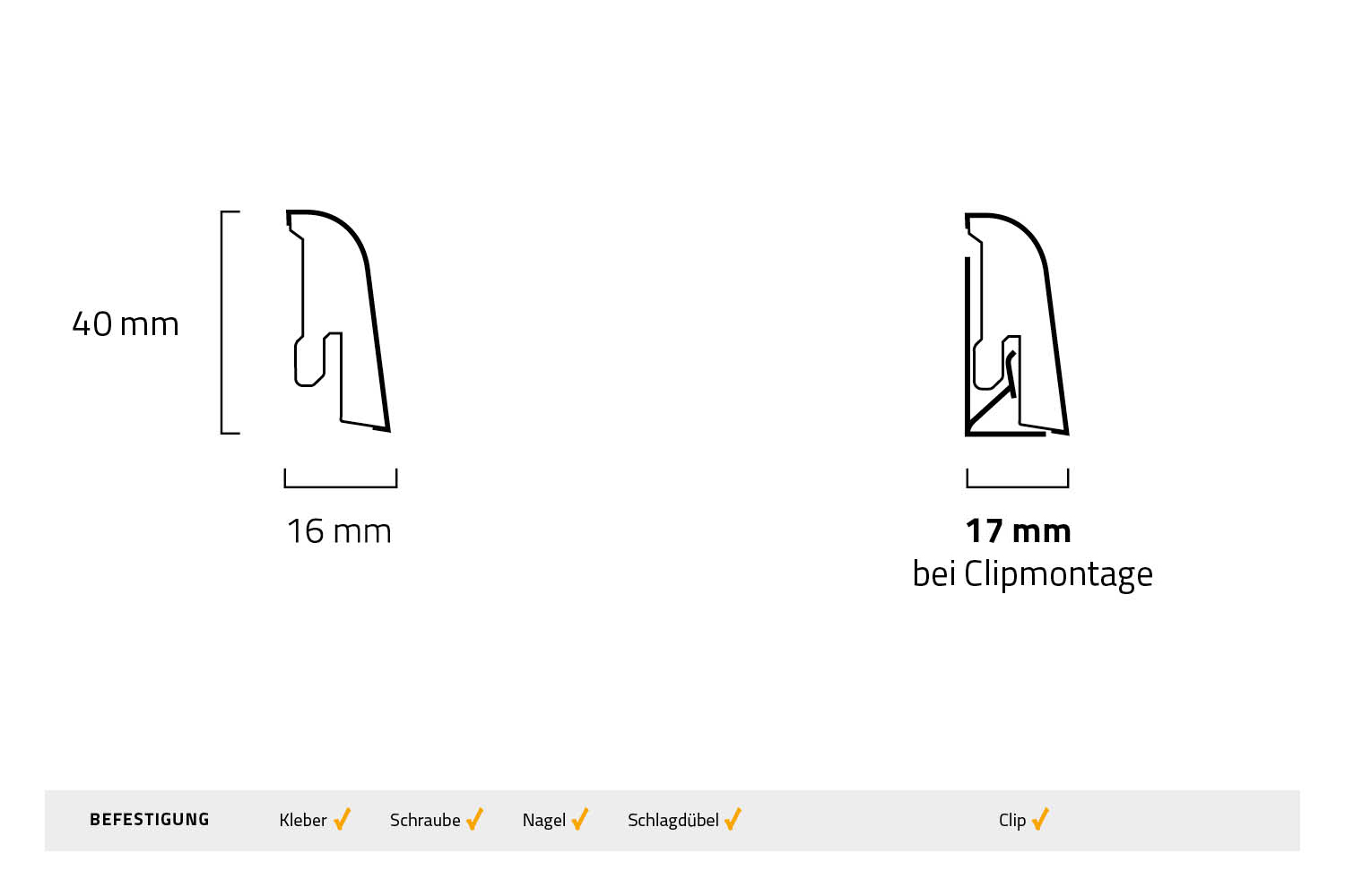| Befestigungsart: | Clip, Kleber, Schraube |