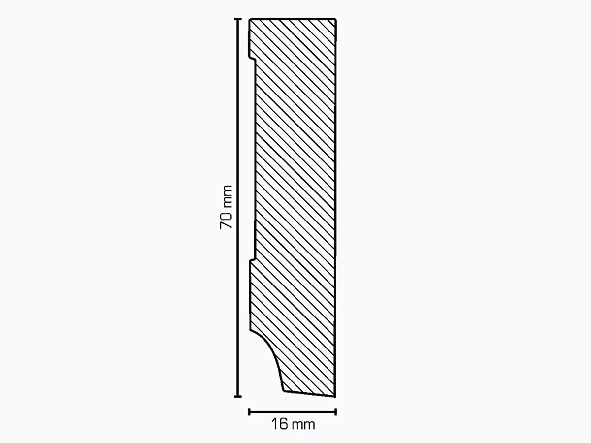 Sockelleiste weiß 16 x 70 mm - MDF foliert RAL9016
