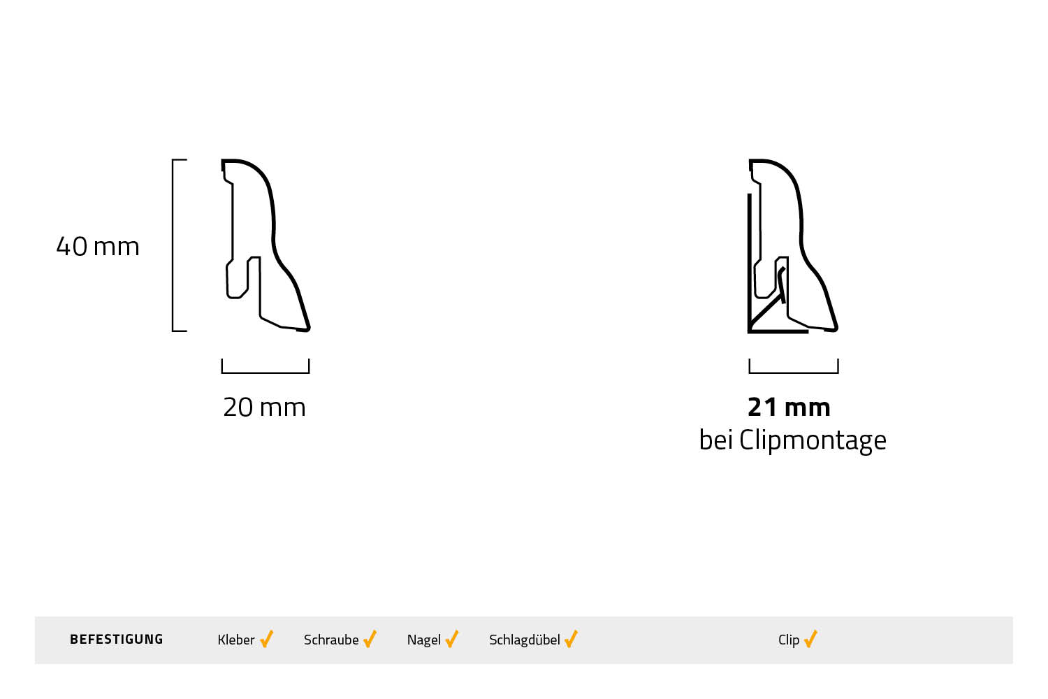 Sockelleiste weiß 20 x 40 mm Marburger Profil - MDF foliert (RAL9016)