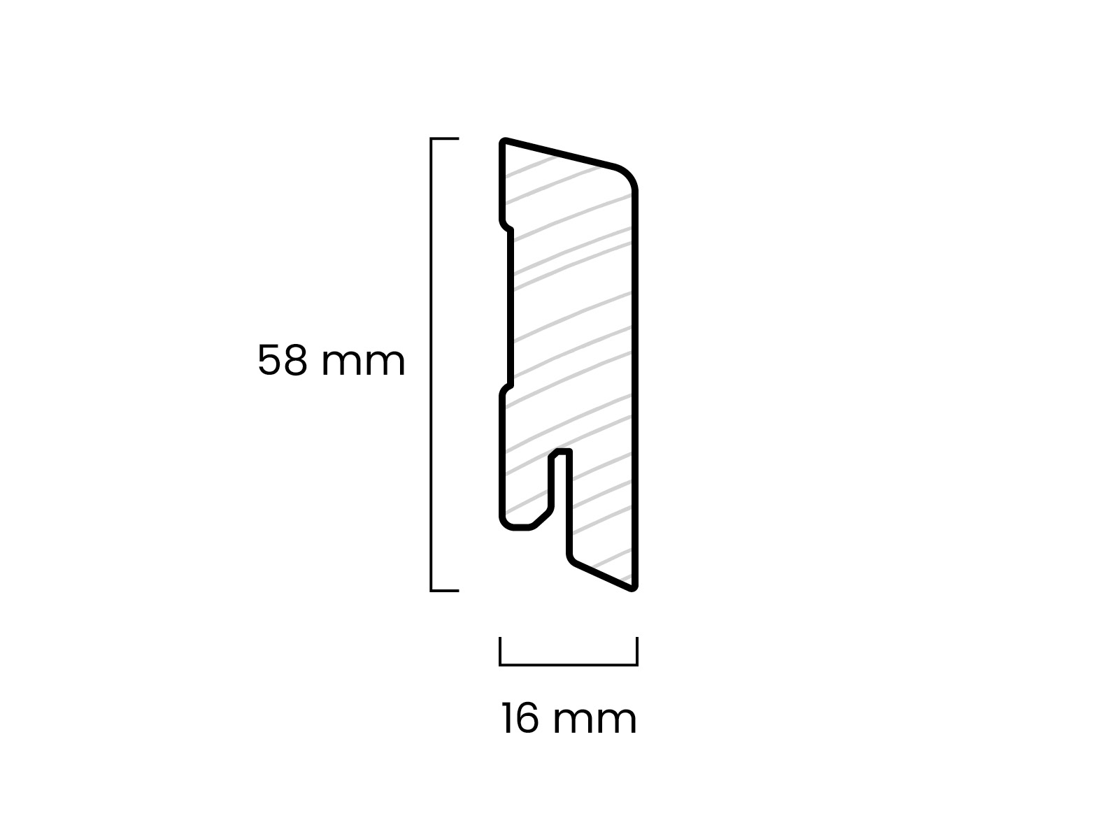 Sockelleiste weiß lackiert 16 x 58 mm Massivholz Abgeschrägtes Profil (RAL9016)