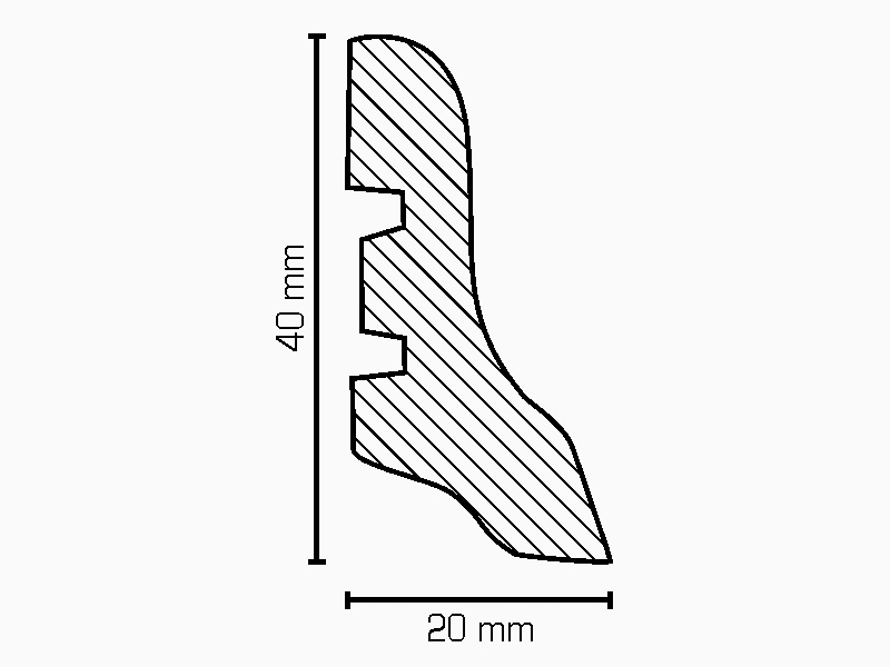 Die Parkettleiste überzeugt durch ihr elegantes Design. Das leicht geschwungene Profil bildet einen gelungenen Abschluss zwischen Boden und Wand. Auf der Rückseite hat die Parkettleiste eine Clipfräsung zur einfachen Montage. Diese Aussparung erlaubt zusätzlich die verdeckte Verlegung von Kabeln.