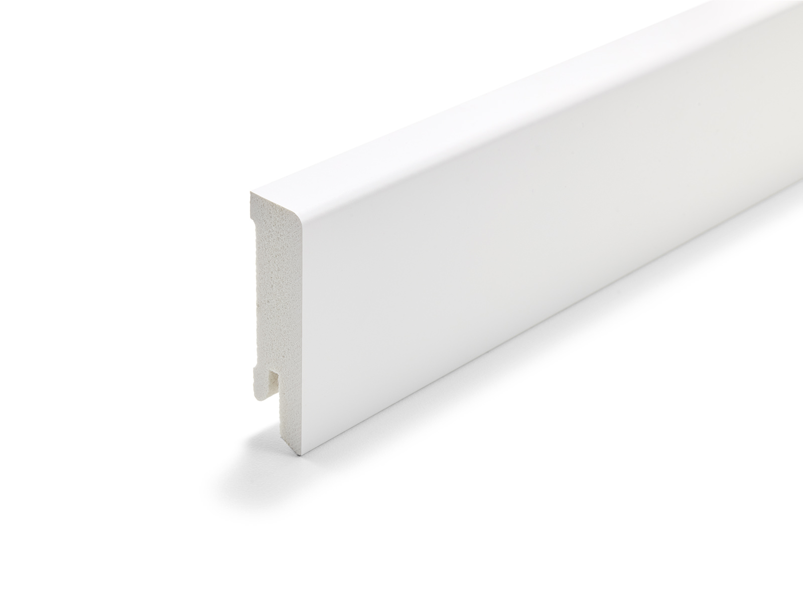 Modern Hartschaum Fußleiste weiß foliert RAL 9016 – 16 x 58 mm