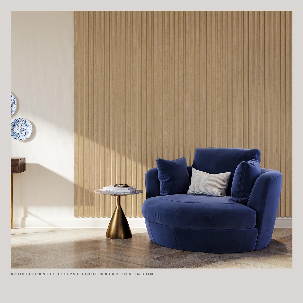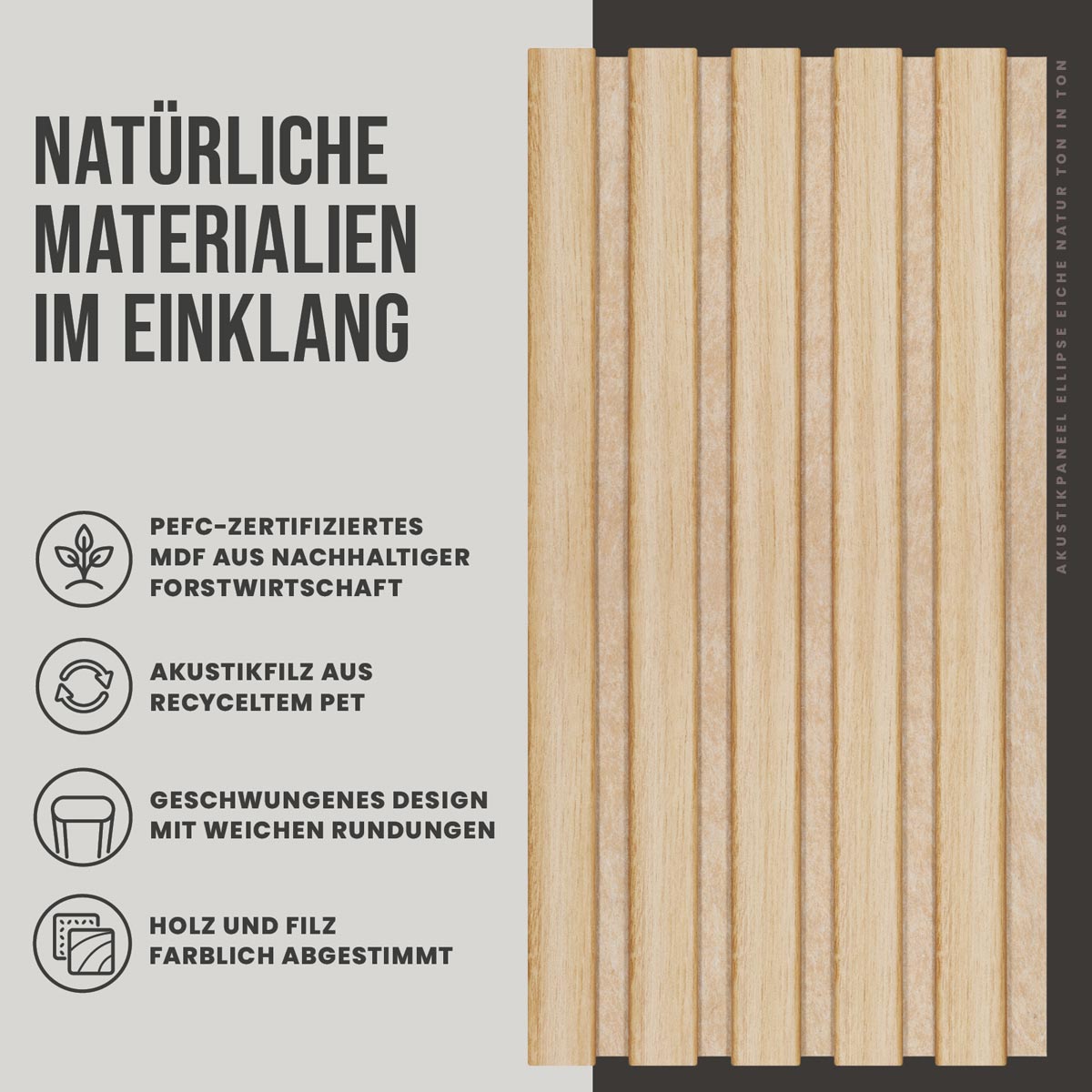 Akustikpaneele Ellipse Eiche Natur Ton in Ton – Rundes Design mit klarer Struktur