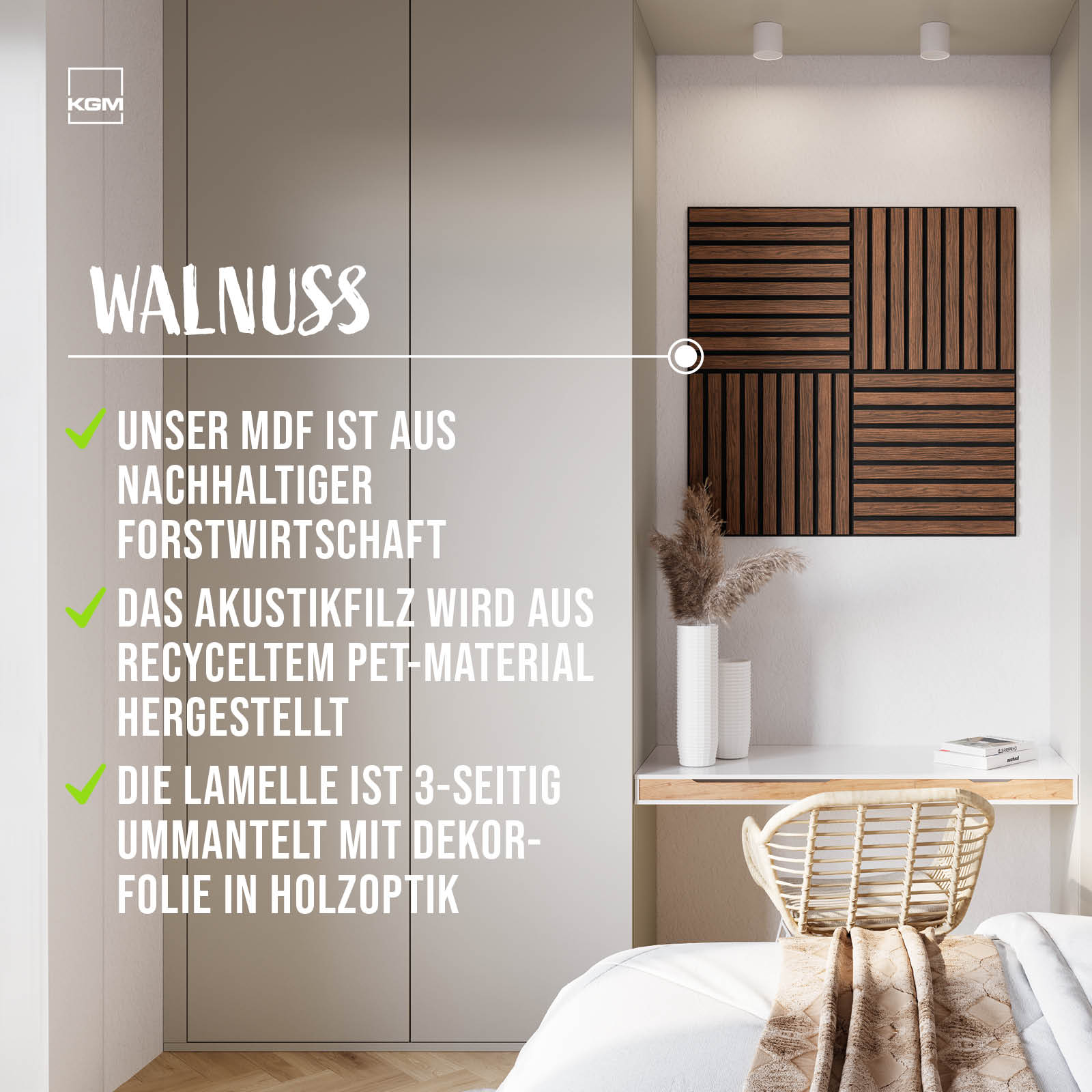 KGM ExPress 50 Akustikpaneel Walnuss (50x50cm) 4er Set