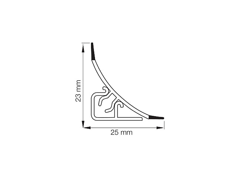 Ober- und Unterseite sind mit Gummilippen ausgestattet, wodurch eine durchgehende Abdichtung entsteht. Die Leiste besteht aus robustem PVC und ist pflegeleicht. Die Maße betragen 23x25mm – passend für den Einsatz im Küchenbereich.