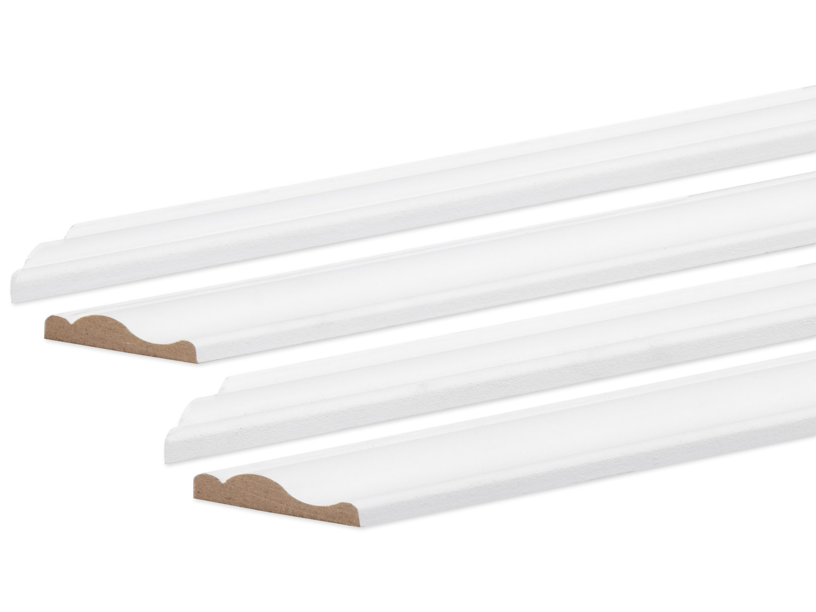 Die Sets bestehen aus passgenau zugeschnittenen, weiß grundierten MDF-Leisten mit selbstklebender Rückseite. Dadurch lässt sich die Montage sauber und ohne zusätzliches Werkzeug umsetzen. Du richtest die Leisten aus, drückst sie an – und erhältst gleichmäßige Kassenwände mit präziser Linienführung. Bohren oder Schrauben ist nicht notwendig.