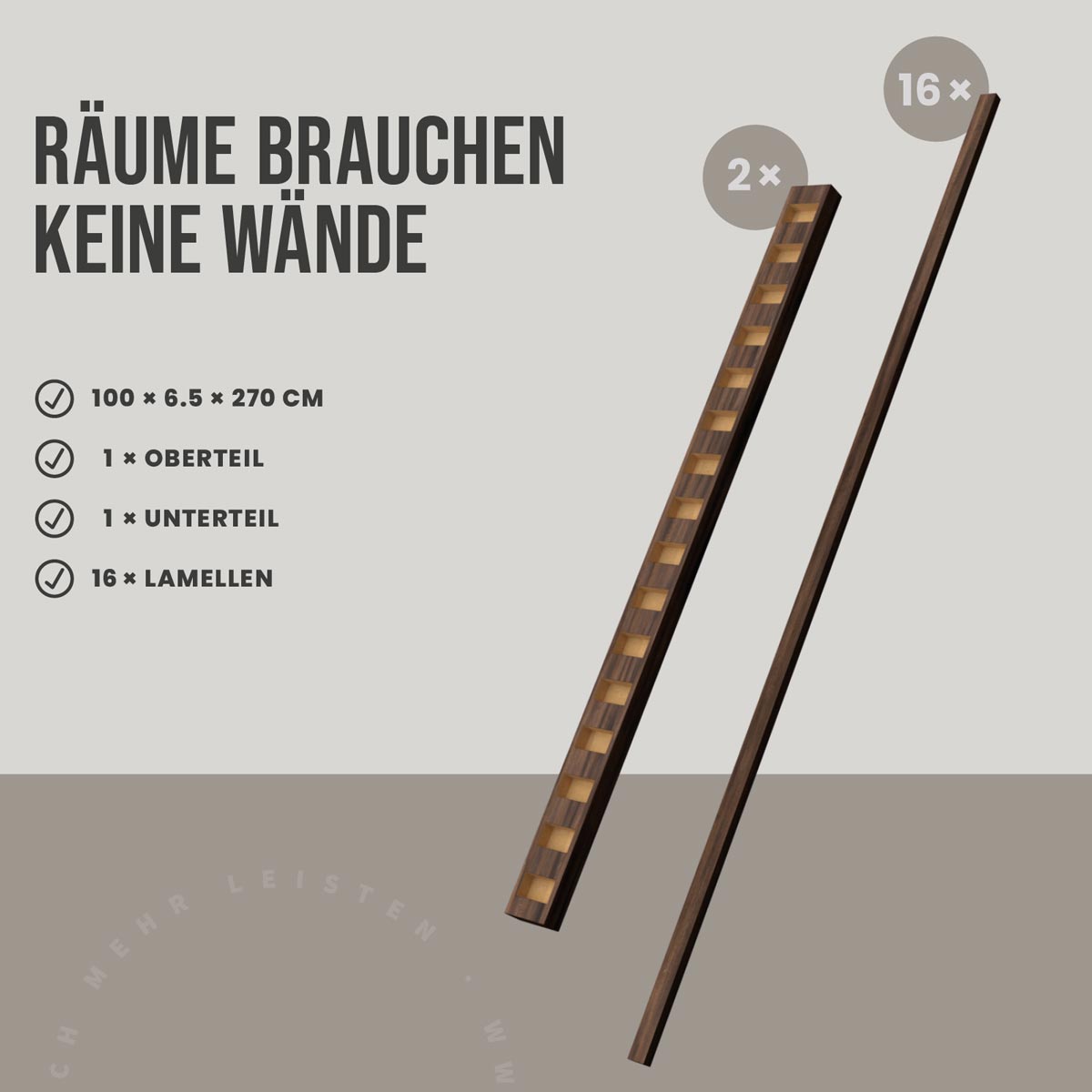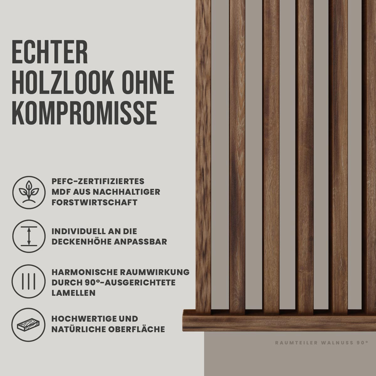 Raumtrenner-Set 90° Walnuss – geradlinige Gestaltung für strukturierte Räume