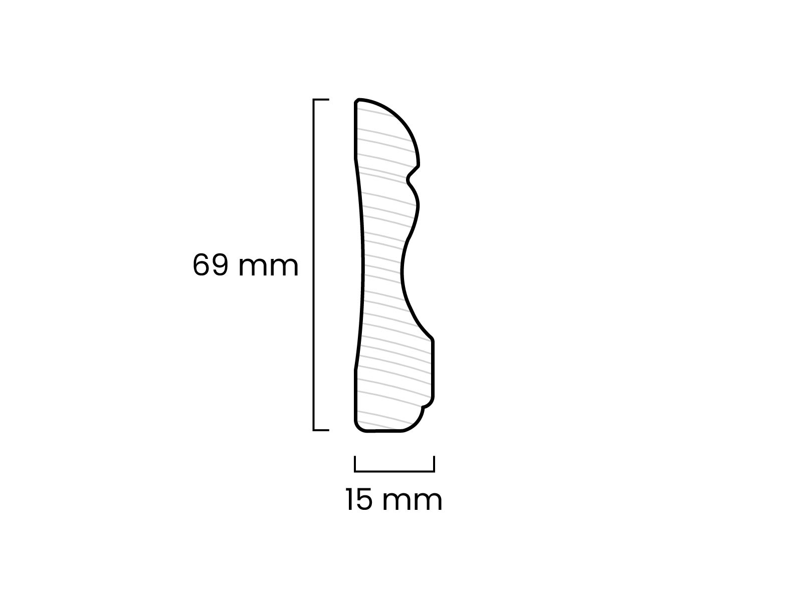 Mit dem Maß 15x69x2400mm ist die Leiste vielseitig einsetzbar. Die natürliche Holzmaserung bleibt unter dem Lack dezent sichtbar, was für ein gleichmäßiges, aber nicht künstliches Erscheinungsbild sorgt. Das Material ist formbeständig und wird in Deutschland gefertigt – mit Massivholz aus kontrollierter Herkunft.