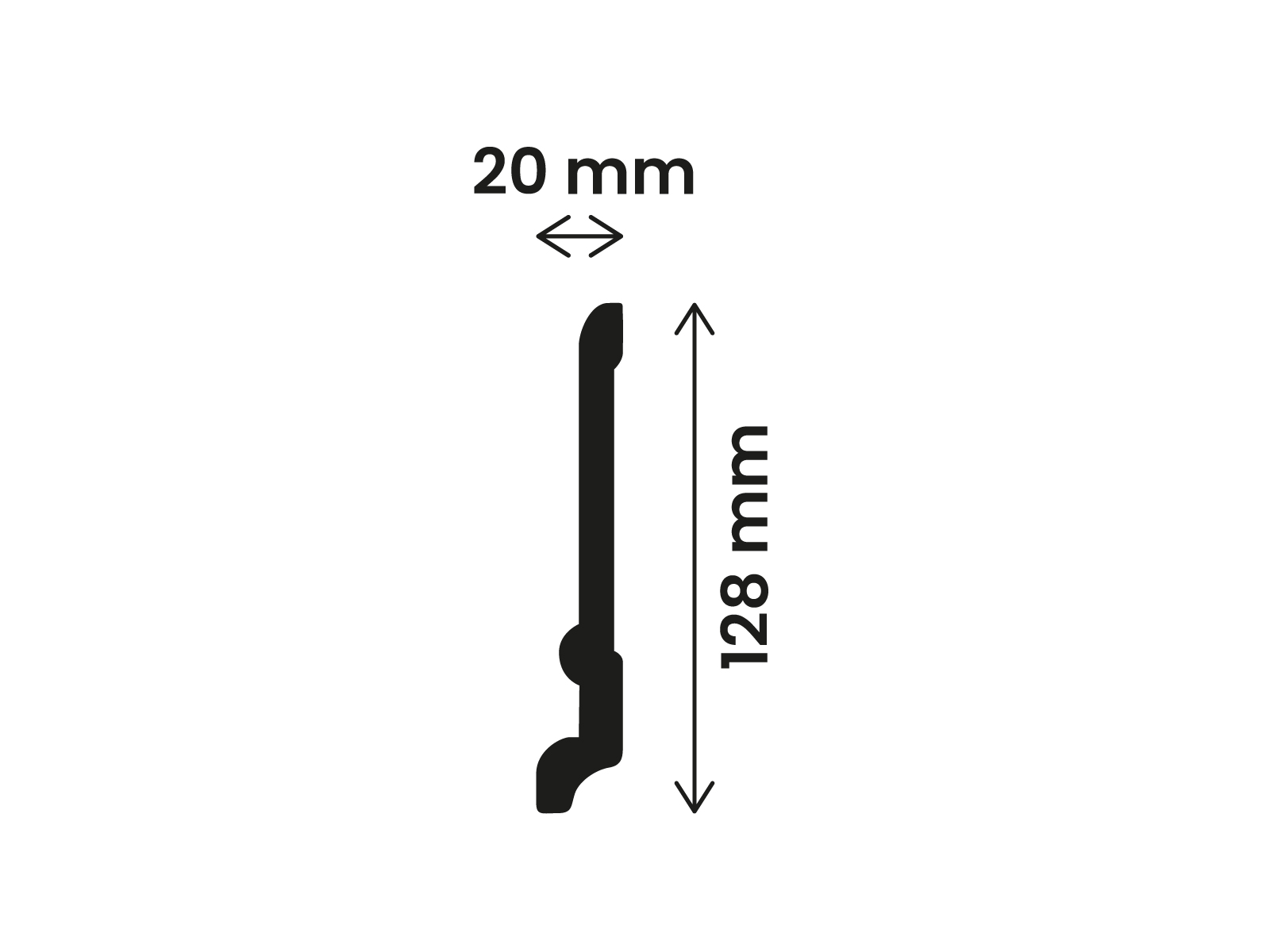 Diese Fußleiste besteht aus extrudiertem HP-Polymer (Styropor) und eignet sich für den Abschluss zwischen Wand und Boden. Das Zierprofil CF13 hat eine sichtbare Höhe von 128mm und eine Breite von 20mm. Die Oberfläche ist weiß, glatt und überlackierbar. Durch das geringe Gewicht und die widerstandsfähige Oberfläche ist die Leiste montagefreundlich und pflegeleicht.