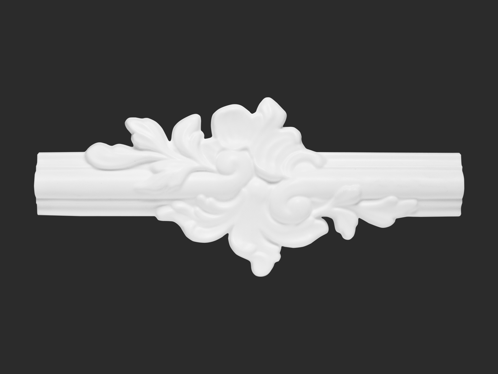 Das Ornament OW 11 ist die passende Ergänzung zur Wandleiste CW 11. Es wird aus extrudiertem Polystyrol gefertigt, ist stoßfest und druckbeständig, mit einer glatten, überstreichbaren Oberfläche. Für die farbliche Anpassung eignet sich handelsübliche Wandfarbe auf Acryl- oder Wasserbasis.