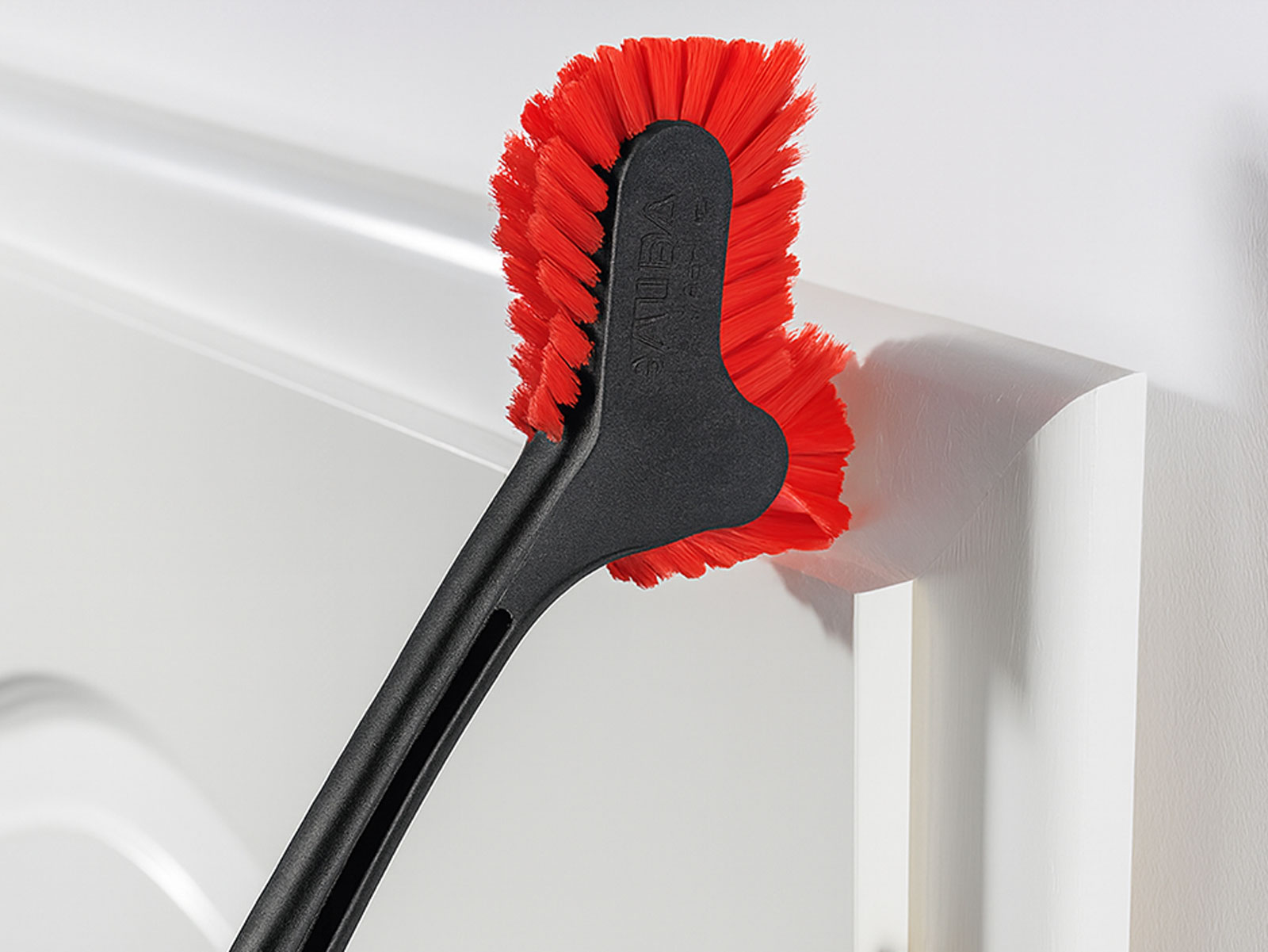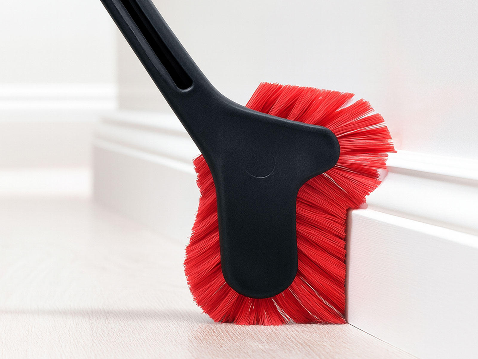 Diese Reinigungsbürste wurde für die manuelle Reinigung von Fußleisten, Türrahmen und Fensterrahmen entwickelt. Dank der umlaufenden Borsten erreicht sie auch schwer zugängliche Ecken und Kanten zuverlässig. Der verlängerte Griff ermöglicht den Einsatz über Kopf – zum Beispiel bei höherliegenden Rahmen oder Leisten.