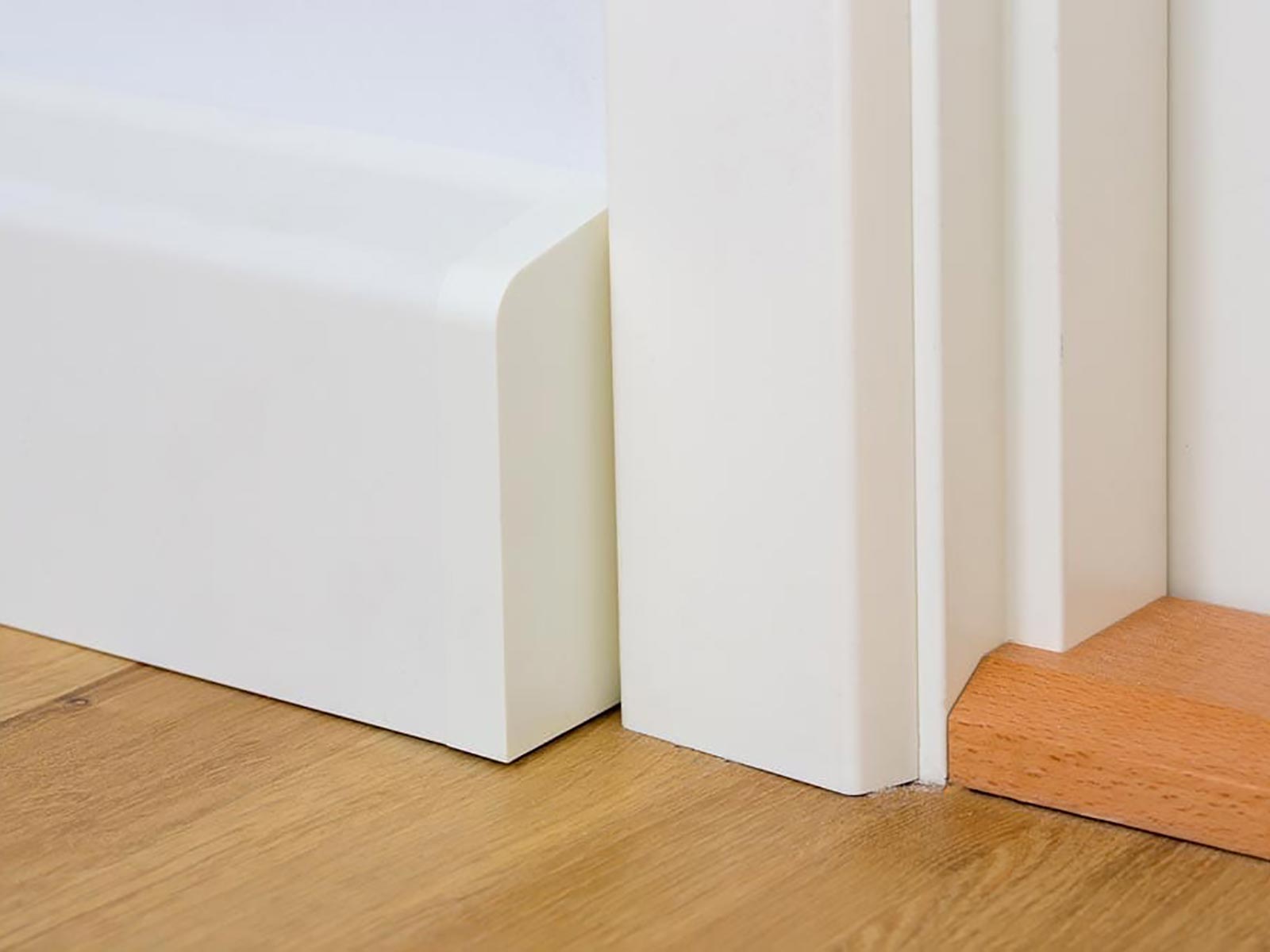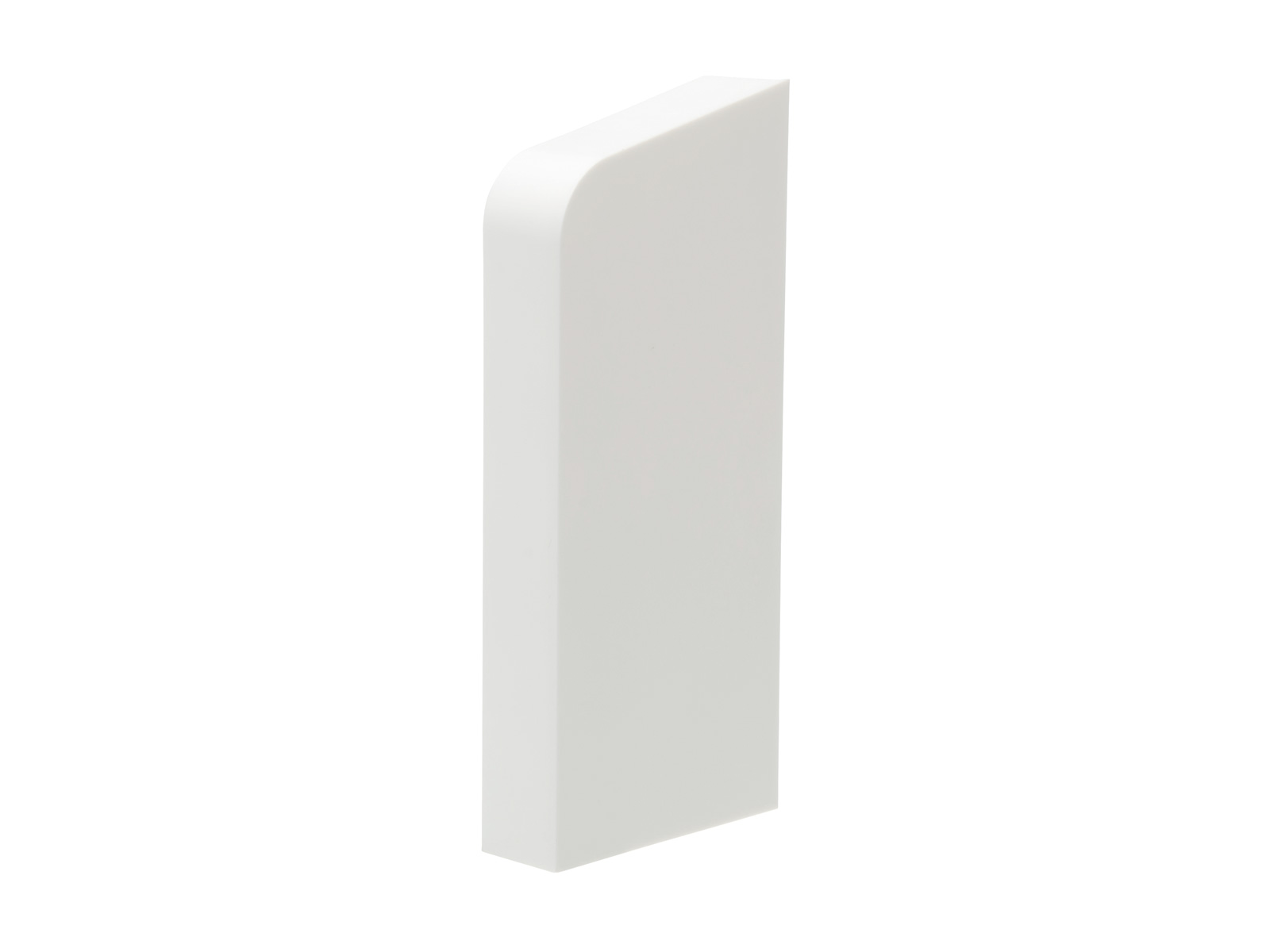 Gefertigt aus formstabilem Hart-PVC mit weißer Oberfläche. Das Material ist schlagfest, kratzfest und feuchtigkeitsbeständig. Es gilt als pflegeleicht und eignet sich gut für stärker genutzte Bereiche. Die Endkappe ist frei von Schwermetallen und wird umweltschonend produziert.